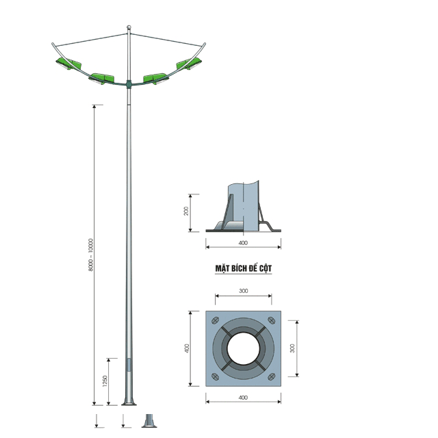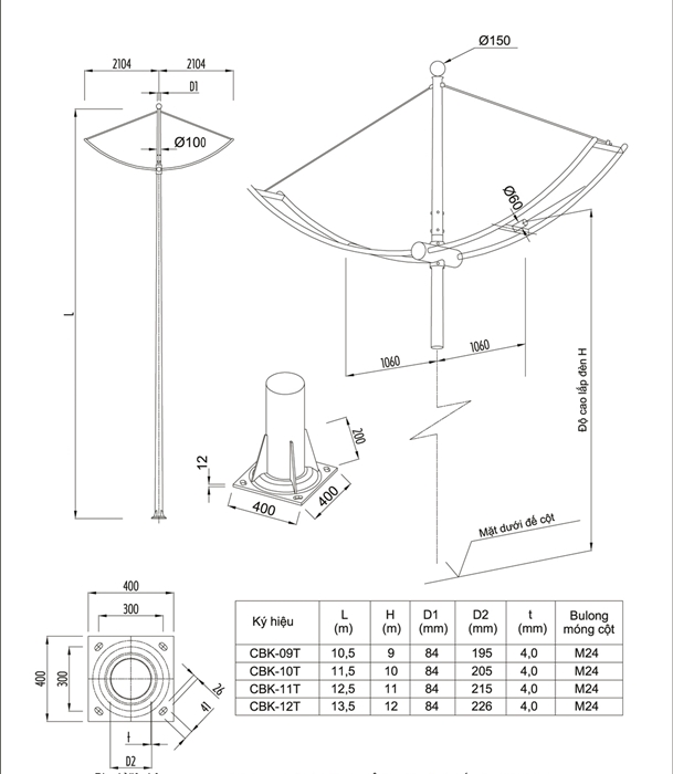 D2: Kích thước ngoài tại mặt bích chân cột.