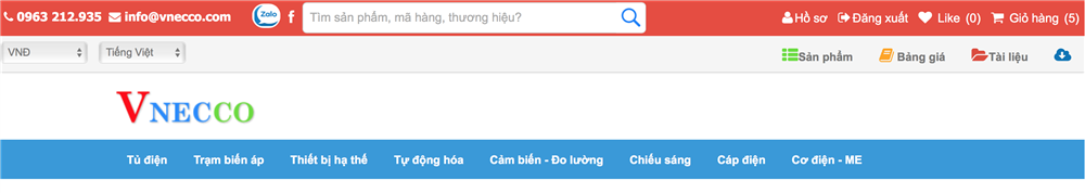 - Sử dụng menu sản phẩm của website: chọn loại sản phẩm muốn mua là tủ điện, máy biến áp, Chiếu sáng,