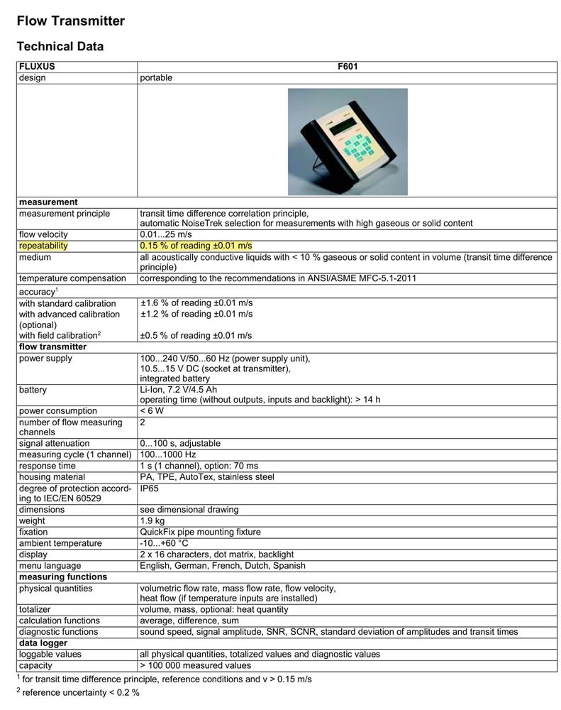•     Portable, easy-to-use flow transmitter with 2 flowchan- nels, multiple inputs/outputs, an integrated data logger with a serialinterface