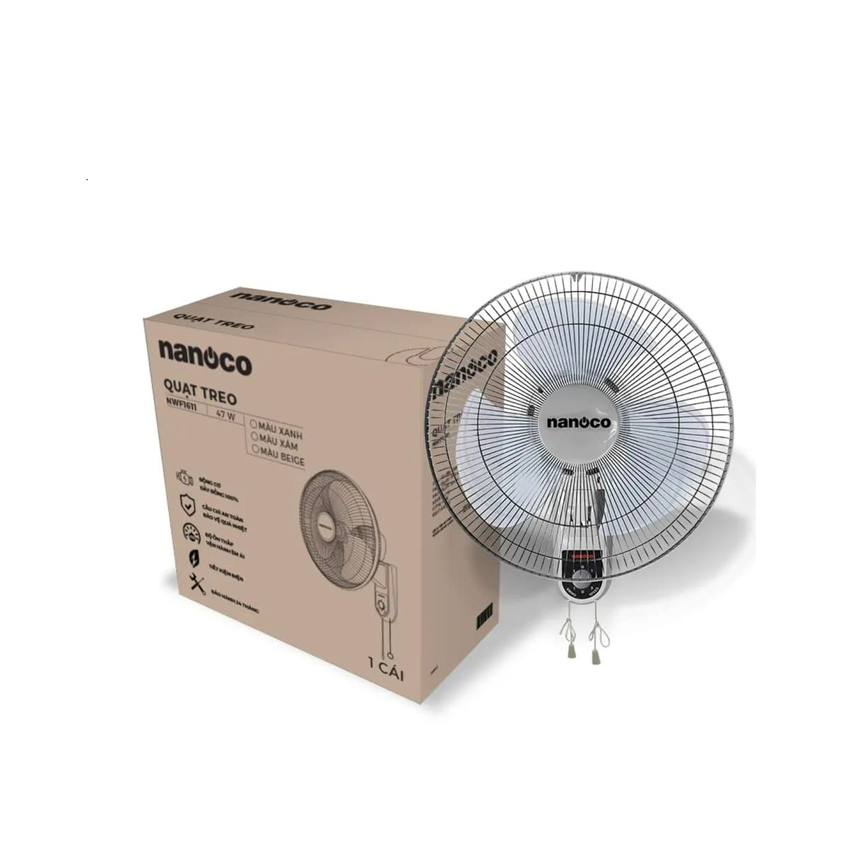 Quạt treo tường Nanoco NWF1611G Màu Xám