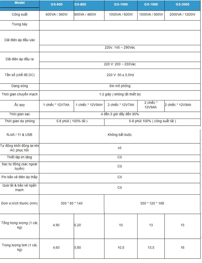 Bộ lưu điện UPS Offline GS 2000VA/1200W