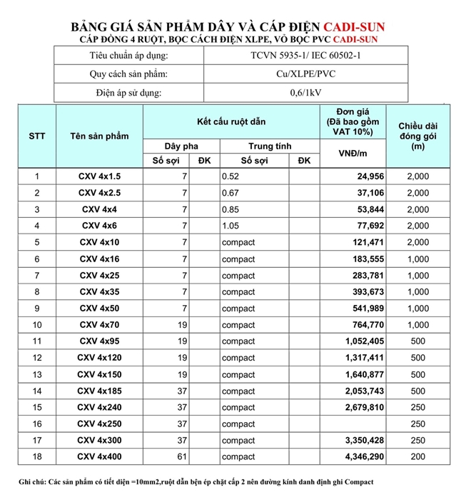 Ứng dụng: Cáp điện lực 1 đến 5 lõi , ruột đồng, cách điện XLPE, vỏ bằng nhựa PVC, dùng để truyền tải, phân phối điện trong công nghiệp, tần số 50Hz, lắp đặt cố định