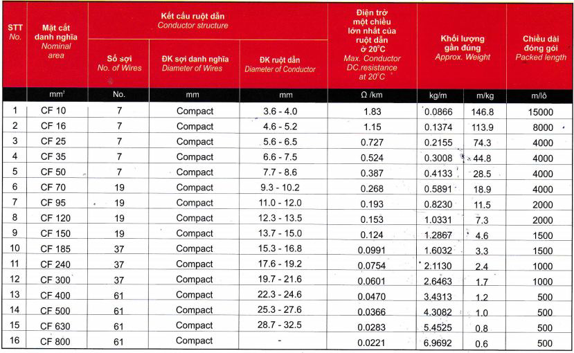 Cáp đồng trần ủ mềm ép chặt CF 16 - Cadisun