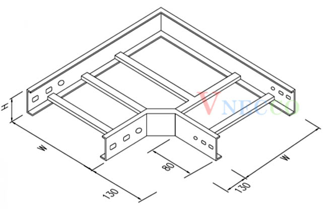 Thang máng cáp được sản xuất với độ rộng tiêu chuẩn từ 50mm đến 800mm, độ dài tiêu chuẩn 2400mm với đầy đủ các loại phụ kiện lắp đặt.
