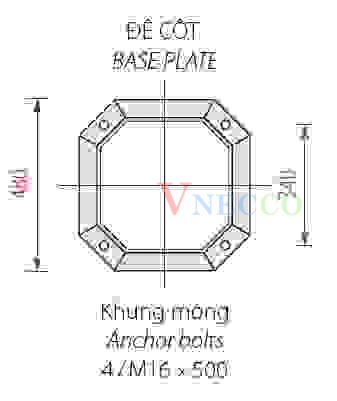 • Lắp đặt: Cột được liên kết với bê tông móng bằng 04 bu lông M16x340x340