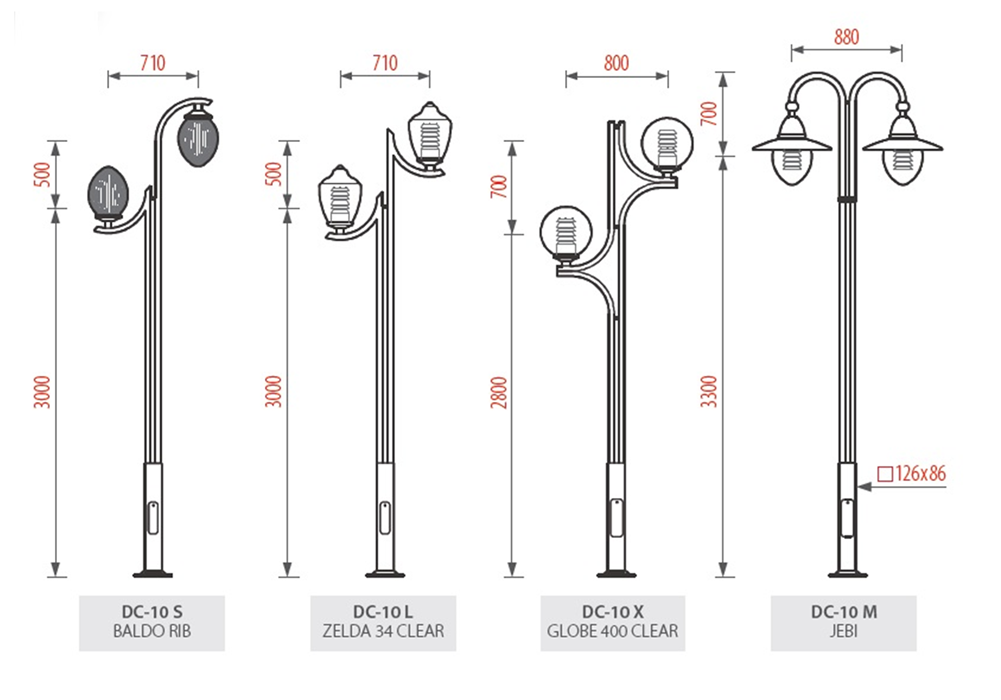 Cột đèn trang trí sân vườn DC10 được làm bằng thép mạ kẽm nhúng nóng, cột có thể lắp nhiều loại tay chùm và đèn khác nhau, được dùng cho nhiều loại không gian chiếu sáng sân vườn.