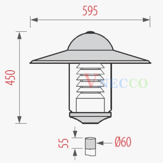 • Đèn lắp trên đầu cột Ø60, ngập sâu 70mm