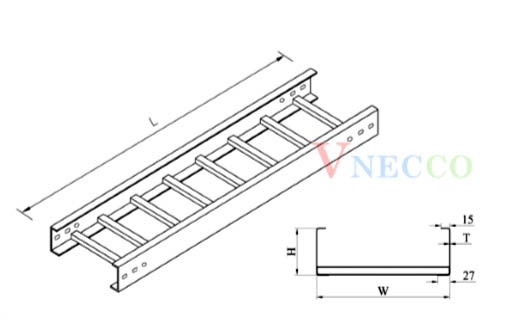 Thang máng cáp được sản xuất với độ rộng tiêu chuẩn từ 50mm đến 800mm, độ dài tiêu chuẩn 2400mm với đầy đủ các loại phụ kiện lắp đặt.